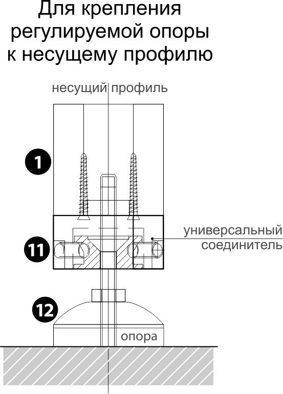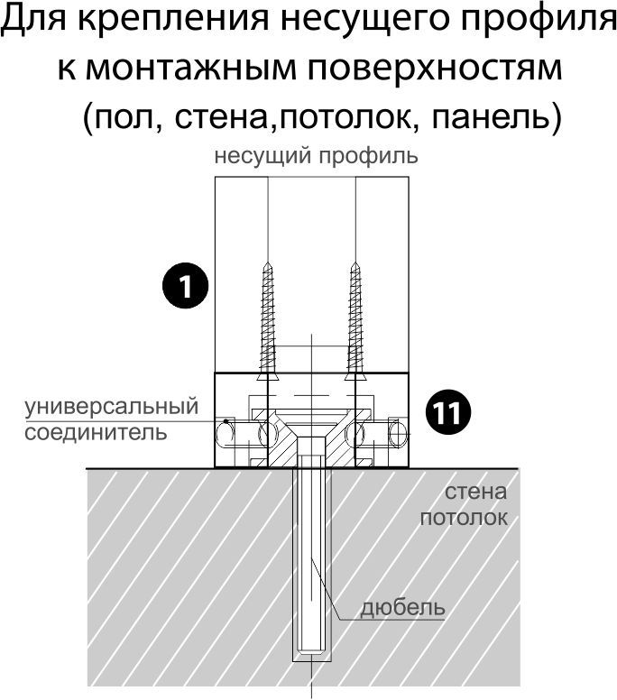 — жесткого крепления торца несущего профиля к стене, потолку, полу, панелям и т.д.